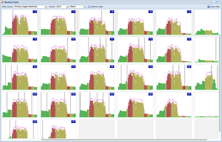 The Monthly Profile utility shows a composite load profile graph that shows an overview of consumption for an entire month.
